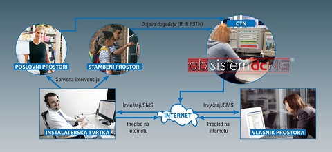 Ovakav, vrlo efikasan način praćenja tehničkog stanja kako bežične tako i žičane i hibridne opreme na objektima moguć je dojavom događaja koja stiže na određeni nadzorni centar koji istovremeno instalaterima ili vlasnicima prostora omogućuje da po želji, sami provjeravaju stanje opreme. Na CTN (Centralni tehnički nadzor) prihvaćaju se dojave alarmnih događaja s ugovorenih štićenih objekata bilo da je riječ o objektima gdje su instalaterske tvrtke same instalirale opremu ili o objektima s čijim vlasnicima imaju ugovor o održavanju pa klijent (instalaterska tvrtka ili vlasnik prostora) u bilo koje doba može putem interneta samostalno pregledavati informacije i stanje štićenog prostora. Prednosti za vlasnike štićenih prostora koji ugovore ovakvu uslugu monitoringa i održavanja tehničke ispravnosti sustava zaštite su: