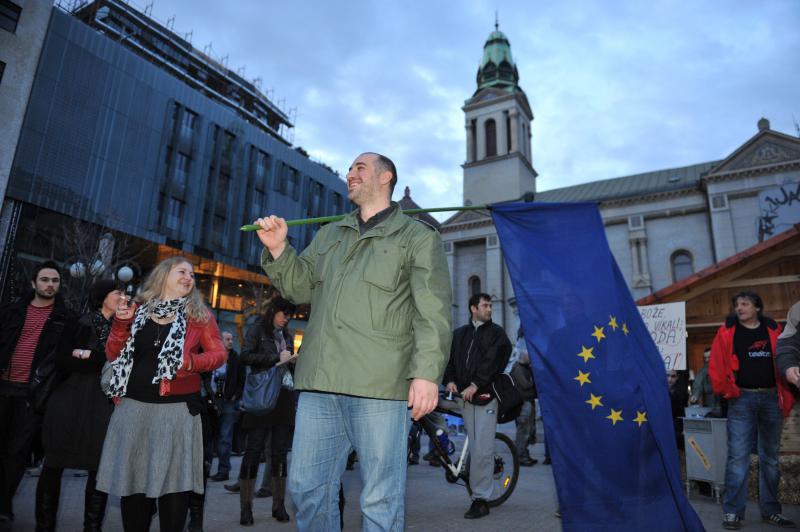 Uzvikujući "hoćemo istinu" i "nećemo cenzuru" prosvjednici su tražili da ih se primi u središnji televizijski dnevnik HTV-a te poručili da nisu "ničija politčka inicijativa", već da žele "bolju Hrvatsku sa sposobnim mladim ljudima". Uz uzvike "hoćemo u Dnevnik" i "podrška seljacima" prosvjednici su zazivali i ime urednika večerašnjeg Dnevnika Ivana Jabuke vičući "Jabuka ostavka". Oko 19,45 sati prosvjednici su Slavonskom ulicom krenuli do Savske gdje su prošli pored sjedišta MUP-a i ispred sjedišta HT-a i Agrokora vikali "lopov Mudrinić" i "Todoriću lopove".