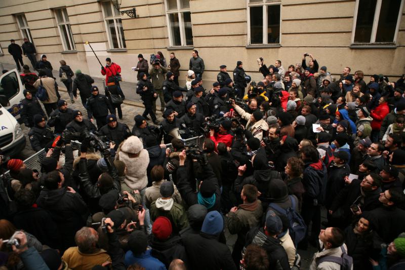 Policija je blokirala sve prilaze Markovom trgu još u 11.30 sati, a prolaz nije dopušten ni novinarima. U Ćirilmetodskoj ulici okupilo se dvjestotinjak građana, a kod Kamenitih vrata ih je još toliko. Među prosvjednicima najviše je mladih ljudi, a cilj je rušenje Vlade. (jk)