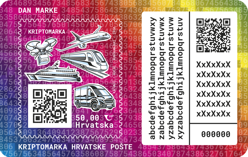 Hrvatska pošta će povodom Dana marke, 9. rujna 2020., pustiti u optjecaj prvu hrvatsku Kriptomarku. Marka je izdana u pet kategorija s pet različitih motiva koji prikazuju prijevozna sredstva: kombi (60.000 primjeraka), vlak (25.000 primjeraka), brod (10.000 primjeraka), zrakoplov (4000 primjeraka) i dron (1000 primjeraka).