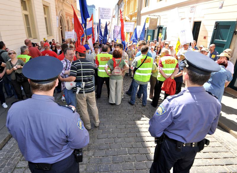 Predsjednik HUS-a Ozren Matijašević napao je "bankarski lobi" koji "kamatari Hrvatsku novcem koji su opljačkali otimanjem banaka" te se ponovno okomio na Ustavni sud zbog "sramotne odluke" da se ne održi referendum o izmjenama Zakona o radu, iako su sindikati prikupili više od 700.000 potpisa građana. Predsjednik URSH-a Damir Jakuš poručio je pak Čačiću, koji je rekao da će građani moći platiti skuplju struju ako budu manje pričali na mobitele, da "oni koji ne mogu platiti struju nemaju ni za mobitele", te optužio Vladu da će s takvom politikom građane ostaviti "bez struje, plina i mobitela". Prvosvibanjskom prosvjedu nije se priključila Matica hrvatskih sindikata, čiji su čelnici ocijenili da njihove članove ne zanimaju takve akcije, a ove godine nema niti sindikalnih aktivnosti u Maksimiru, gdje se održava tradicionalna proslava Praznika rada u organizaciji Grada Zagreba, uz besplatni grah i zabavni program. (Hina/HT)