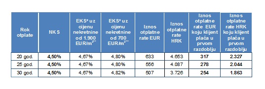 Erste banka pripremila je posebnu ponudu stambenih kredita u okviru programa povezanog sa Zakonom o subvencioniranju i državnom jamstvu stambenih kredita. Nominalna kamatna stopa za prve četiri godine otplate kredita iznosi 4,50%. U sljedeće dvije godine kamatna stopa može se uvećati za maksimalno 10% u odnosu na efektivnu kamatnu stopu iz prethodnog razdoblja.