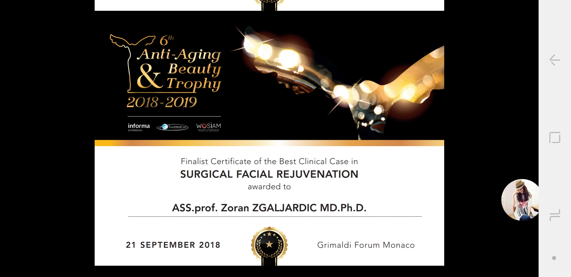Hrvatska je posljednjih godine jako napredovala na polju estetske kirurgije, a Centar za estetsku kirurgiju Zoran Žgaljardić je vrlo visoko pozicioniran čemu svjedoči i činjenica da je na prošlogodišnjem prestižnom natjecanju na estetskom kongresu Anti-age & Beauty Trophy u Monte Carlu, koji je održan u Forumu Grimaldi uvršten među finaliste u dvije kategorije.