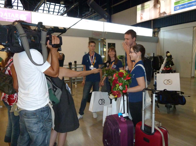 Iz japanskog grada Kyota s 10. svjetske Međunarodne geografske olimpijade jučer su se vratili hrvatski znanstveni olimpijci s izvanrednim rezultatom i osvojene dvije zlatne i dvije srebrne medalje. Srednjoškolske genijalce koji su Hrvatskoj osigurali najveći znanstveni uspjeh, dočekali su sinoć u zračnoj luci Zagreb i predstavnici Croatia osiguranja, glavnog sponzora naših natjecatelja u Japanu.