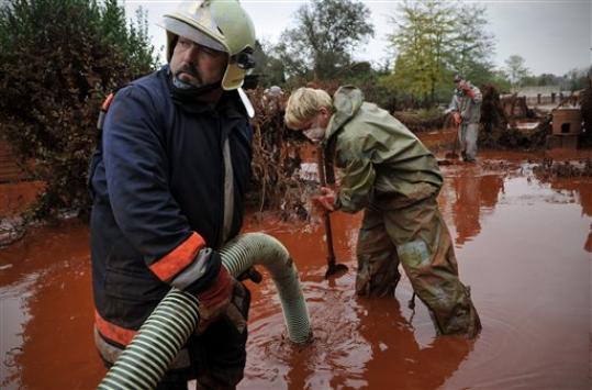 Reuters prenosi kao su ekipe za krizna stanja u ponedjeljak užurbano pokušavale dovršiti gradnju izvanredne brane kod mjesta Kolontar koja bi trebala zadržati drugi val otrovnog blata, ako se ostvare prijetnje o popuštanju napuklog zida rezervoara i istjecanju novih velikih količina tog blata, nusprodukta u proizvodnji aluminija.