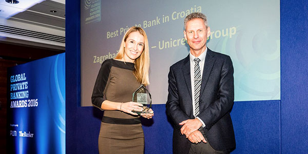 Zagrebačka banaka dobila je prestižnu nagradu za najbolje privatno bankarstvo u Hrvatskoj koju dodjeljuju magazin The Banker i Professional Wealth Management (PWM), izdavač Financial Timesa. Nagrada Zagrebačkoj banci dodijeljena je u sklopu "Global Private Banking Awards 2016" koji se nedavno održao u Londonu. UniCredit, čija je Zagrebačka banka članica dobio je tako dvije prestižne nagrade – „Najbolje privatno bankarstvo u Hrvatskoj“ i „Visoko preporučena“ u diviziji Srednja i Istočna Europa i Mađarska. Nagradu je u ime UniCredita u Londonu preuzela direktorica Privatnog bankarstva Zagrebačke banke Helena Ćorić.