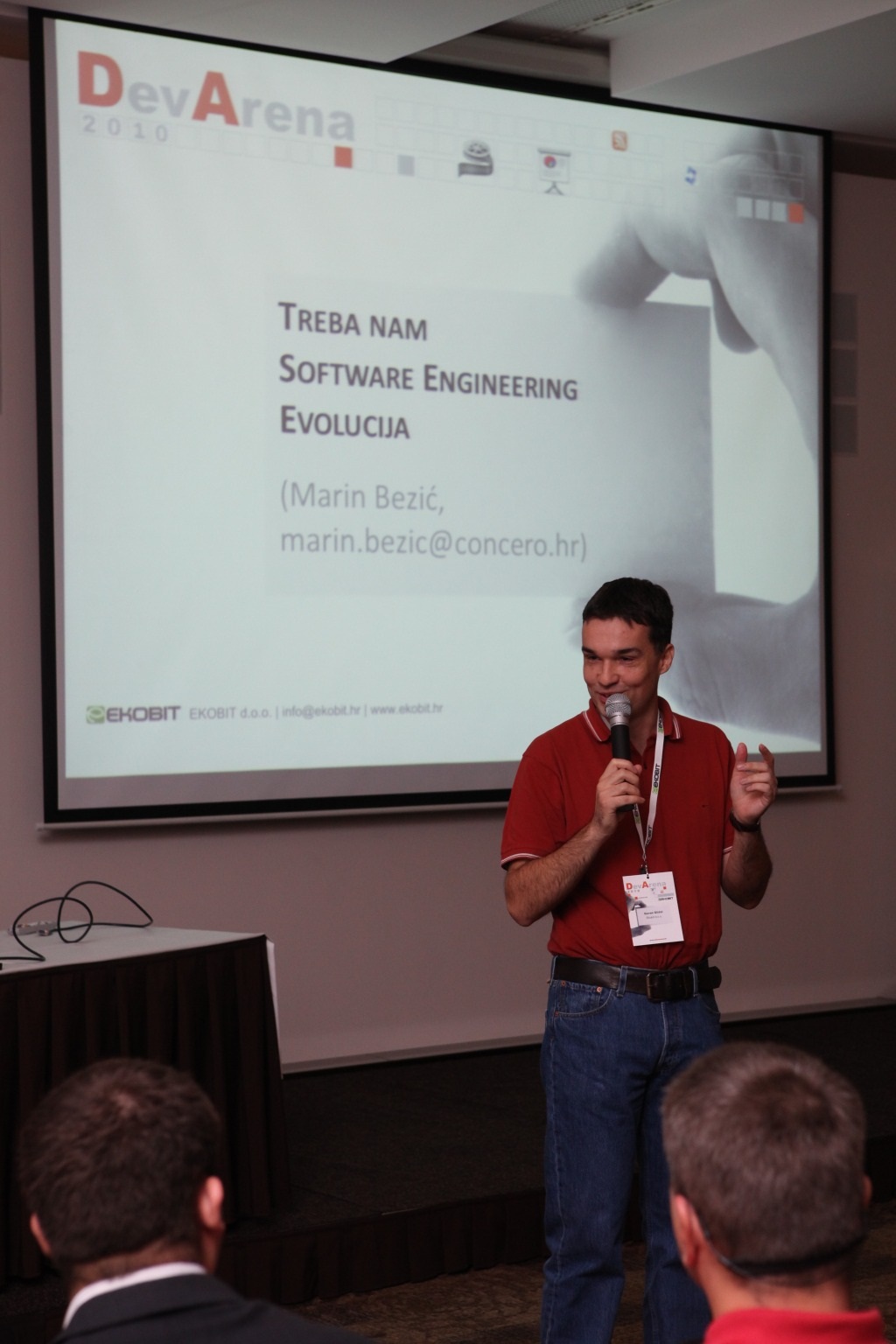 DevArena 2010 u organizaciji tvrtke Ekobit okupila je više od dvije stotine vodećih softverskih inženjera, arhitekata i voditelja projekata iz Hrvatske i regije. Nakon uvodnog predavanja u kojem su se okupljenima obratili Ognjen Bajić, voditelj Ekobitovog razvoja strateških proizvoda, Marin Bezić, nezavisni savjetnik za unaprjeđenje razvoja softvera i Tomislav Tipurić, specijalist za tehnologiju u Microsoftu Hrvatska, program se nastavio u tri zasebna programa.