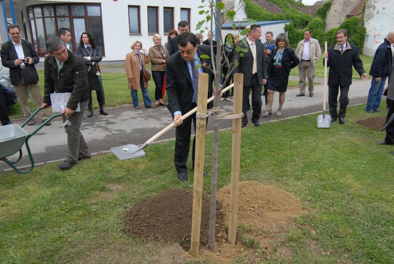 Uoči sjednice Stožera projekta "Volim Hrvatsku" ministar Bajs, direktor Glavnog ureda Hrvatske turističke zajednice Niko Bulić, brodsko-posavski župan Danijel Marušić i gradonačelnik Slavonskoga Broda Mirko Duspara u parku uz brodsku šetnicu na Savi posadili su sadnice drveća u znak potpore toj akciji. (Hina/jk)