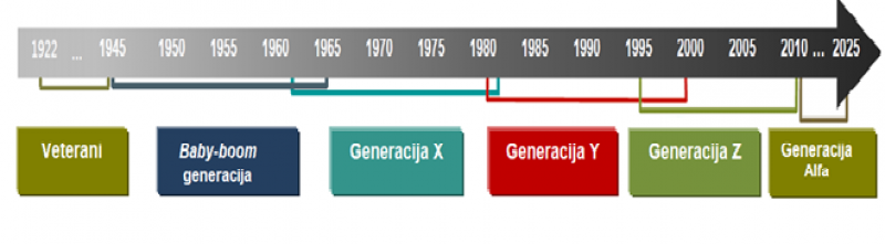 Slika 1. Grafički prikaz godina rođenja pripadnika različitih generacija