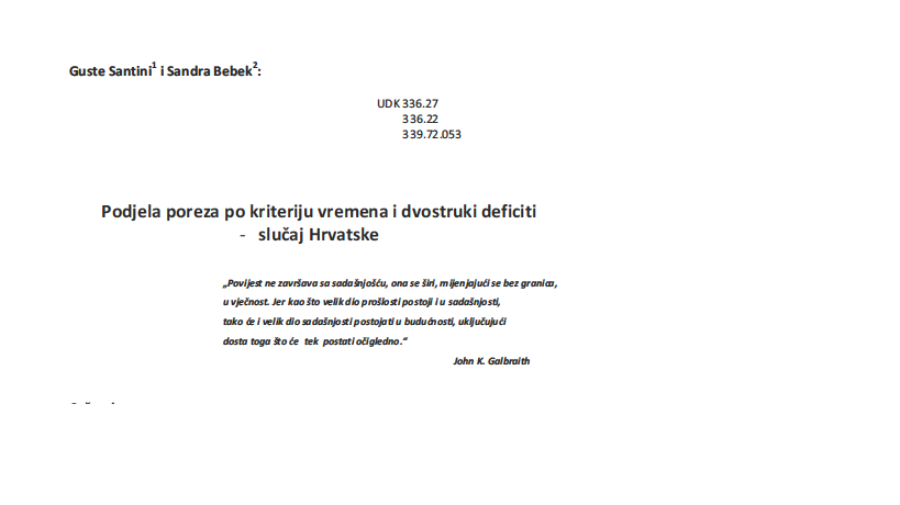 Guste Santini i Sandra Bebek: Podjela poreza po kriteriju vremena i dvostruki deficiti - slučaj Hrvatske