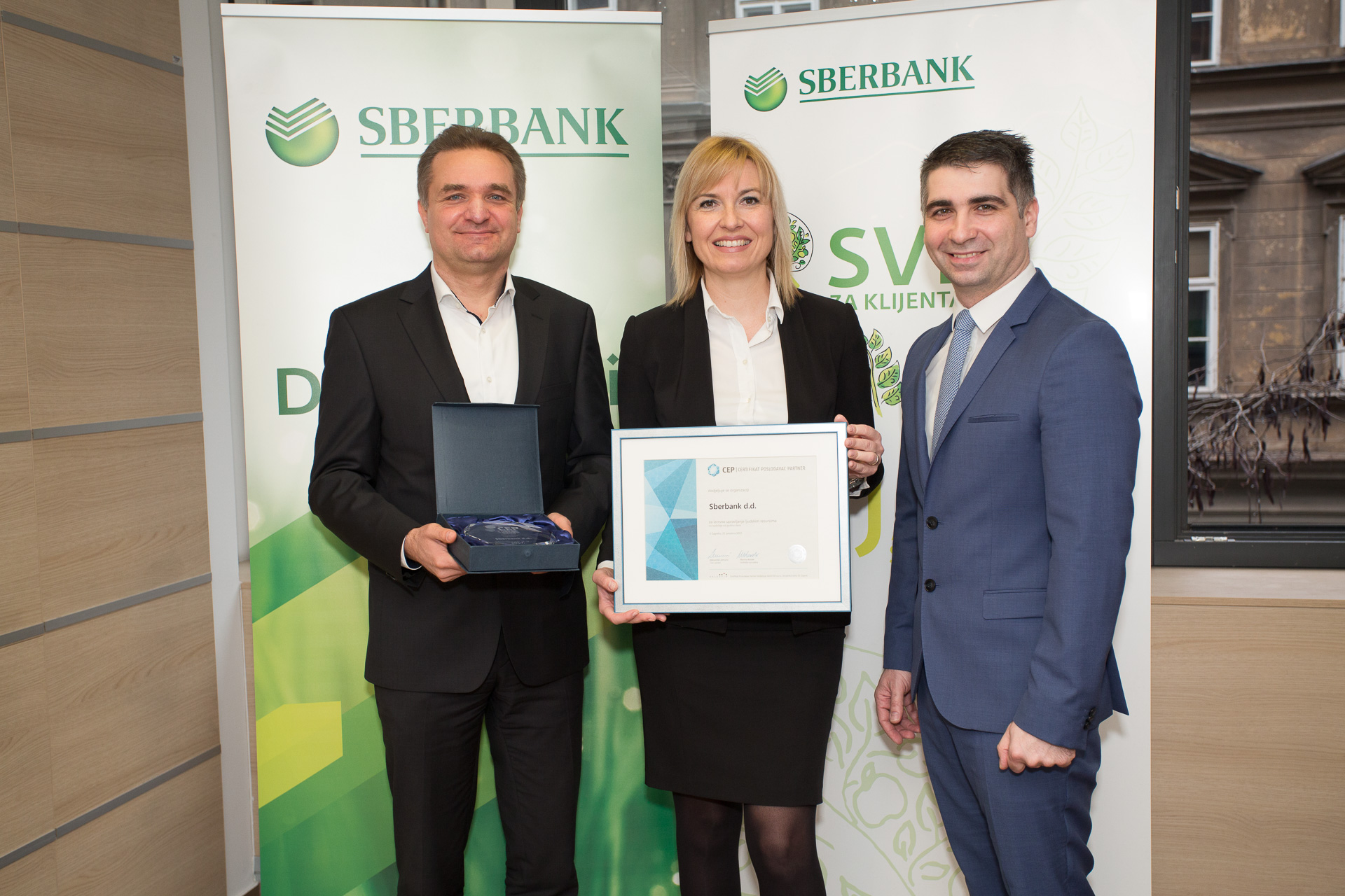 Certifikat Poslodavac Partner osmi je put dodijeljen banci Sberbank zbog najboljih rezultata koje je postigla u području Upravljanja učinkom temeljem odlično postavljenog sustava procjene radne uspješnosti koji je povezan sa strategijom organizacije i razvojem zaposlenika.