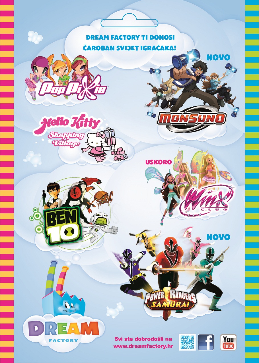Sve licencirane igračke koje nose oznaku i vizualni identitet Dream Factory prate maštu, snove i želje djece na njihovom putu odrastanja. Dream Factory asortiman dostupan je na svim kioscima, boljim knjižarama i trgovinama diljem Hrvatske.
