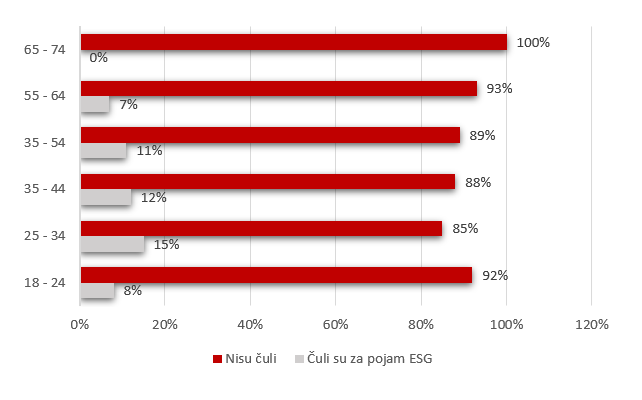Grafikon 1. Postotak građana koji su čuli ili nisu čuli za pojam ESG prema dobnim skupinama: