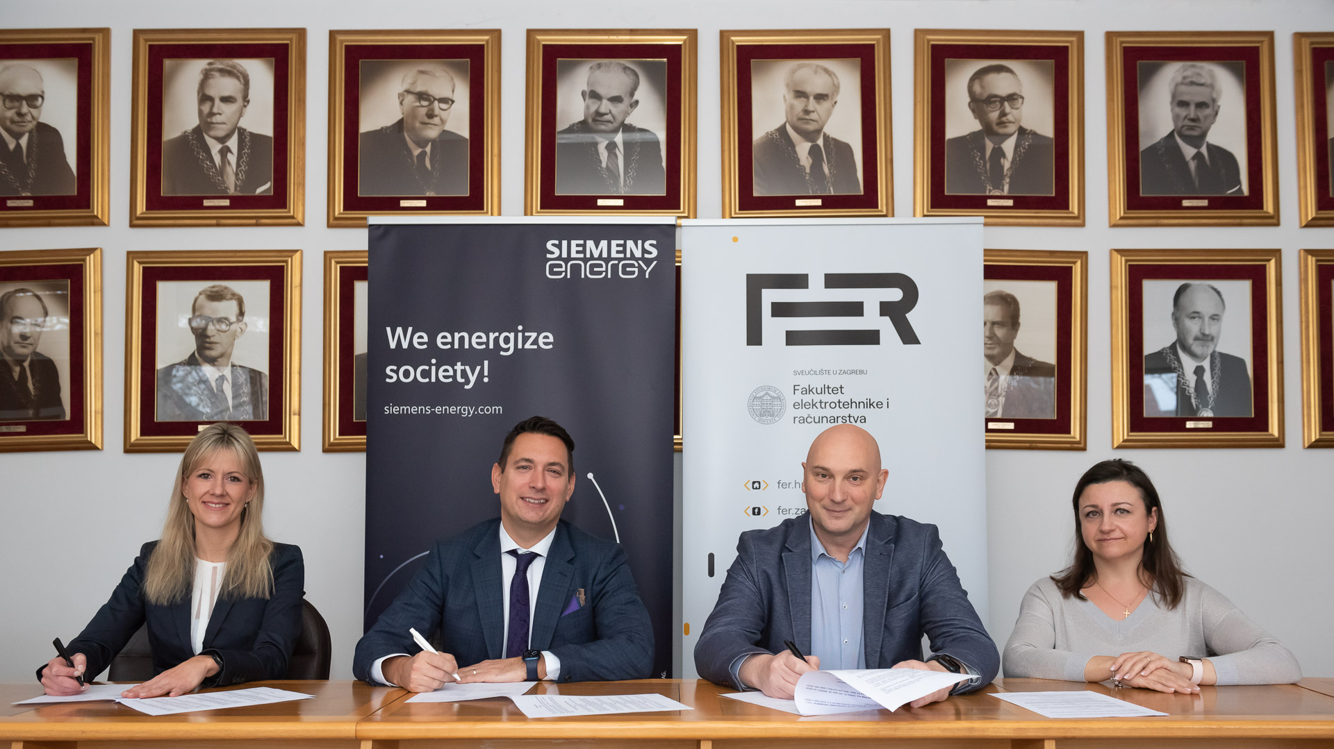 Dekan Fakulteta elektrotehnike i računarstva Sveučilišta u Zagrebu, prof. dr. sc. Gordan Gledec i Uprava Siemens Energyja u Hrvatskoj, koju predstavljaju predsjednik Uprave Boris Miljavac, dipl. iur. i članica Uprave, Laura Musić, dipl. oec., potpisali su Sporazum o suradnji na istraživačkim i razvojnim projektima.