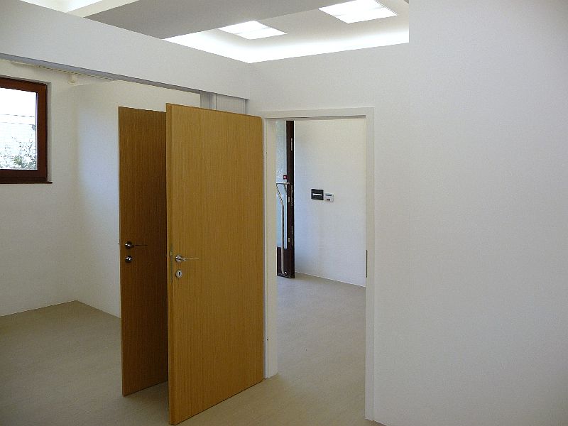 Dvije uredske prostorije odvojene su samo harmo vratima te se jednostavnim otvaranjem vrata pretvaraju u jednu salu. Pomoćne prostorije sastoje se od predprostora koji sadrži mini kuhinju gorenje, ormarić i ogledalo, sa lijeve strane je veliki ugradbeni ormar s policama. Sa desne strane je wc.