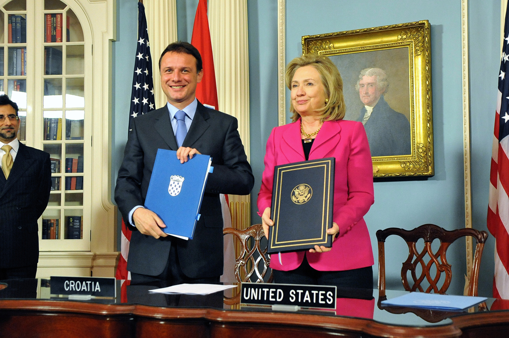 Američka državna tajnica Hillary Clinton i potpredsjednik Vlade i ministar vanjskih poslova i europskih integracija Gordan Jandroković potpisali su Sporazum o zračnom prometu izmedu vlada SAD-a i Hrvatske koji bi prema očekivanjima trebao ojačati poslovne i turističke veze Hrvatske i SAD-a.