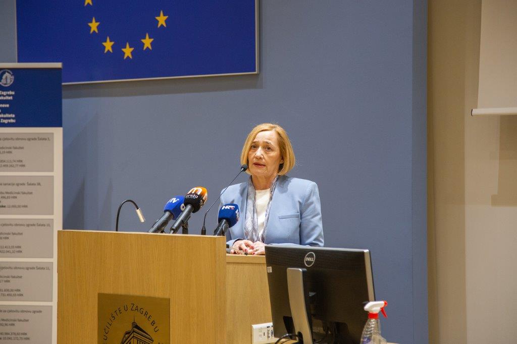 Medicinski fakultet u Zagrebu pretrpio je ozbiljna oštećenja zbog dva prošlogodišnja potresa. Zahvaljujem Vladi RH na 377 milijuna kuna potpore, kojom ćemo obnoviti pet objekata. Prošli tjedan smo otvorili studentski restoran. Drago mi je što smo uspjeli uz sve nedaće osigurati normalan tijek nastave za gotovo 3000 studenata. Sretan sam što uz sve ovo mogu najaviti i izgradnju Istraživačkog centra financiranog sredstvima iz EU fondova, kao i pokretanje Studentske poliklinike za sve studente našeg Fakulteta koji žive izvan Zagreba, ali i Hrvatske, kako bi dobili svu potrebnu zdravstvenu skrb. I na to sam posebno ponosan“, rekao je dekan Fakulteta, prof. Dr. S. Slavko Orešković.