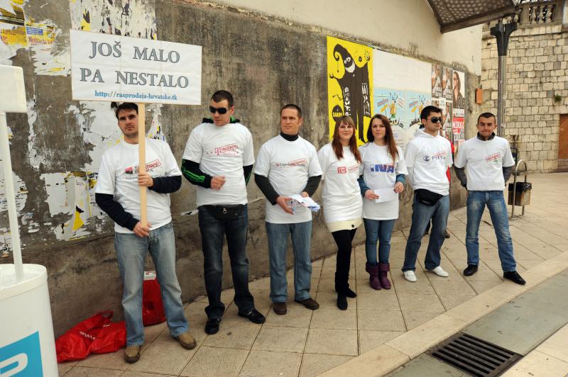 U Marmontovoj je ulici u središtu Splita pod nazivom "Još malo, pa nestalo - STOP rasprodaji RH" održan performans splitske podružnice Hrvatske stranke prava dr. Ante Starčevića čiji su članovi građanima pokazali kako izgleda privatizacija na hrvatski način, što je sve dosad prodano i što je ostalo za prodati.
