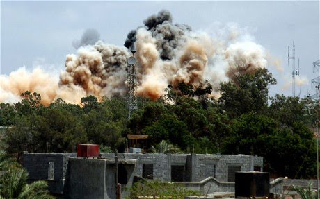 NATO-vi borbeni zrakoplovi gađali su rano u subotu ciljeve u Tripoliju, uzrokujući materijalnu štetu i žrtve, javlja Reuters pozivajući se na libijsku državnu televiziju te prenosi da libijski vođa potiče strane na pregovore no da sam u njima neće sudjelovati.