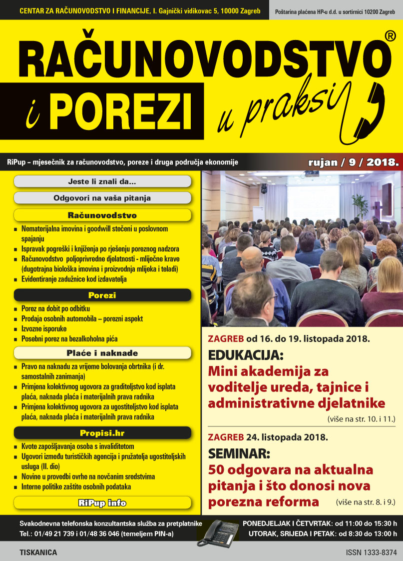 Novi broj časopisa RAČUNOVODSTVO I POREZI U PRAKSI 09/2018!