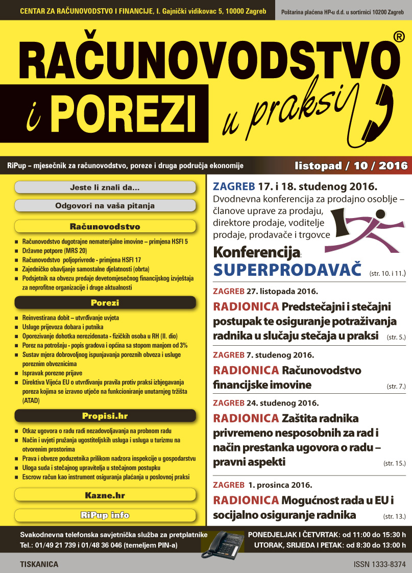Novi broj časopisa Računovodstvo i porezi u praksi (listopad)