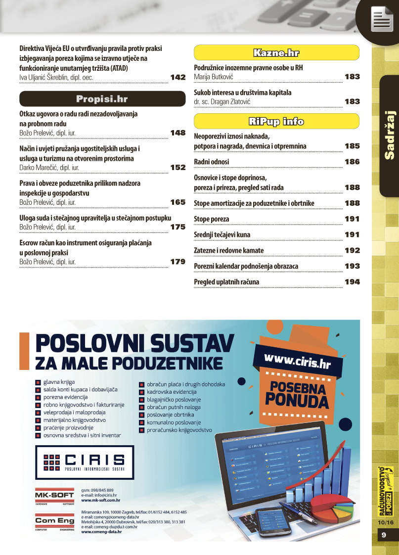 Neka od tema o kojima smo pisali u broju listopad /2016.: