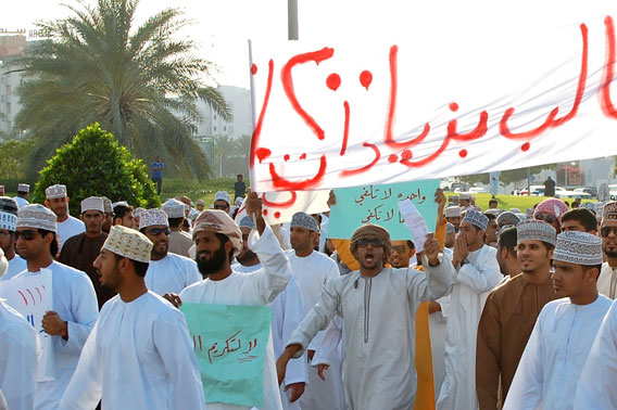 Prosvjednici su uzvikivali slogane tražeći radna mjesta, bolje plaće za Omance i mjere u borbi protiv korupcije. Riječ je o prvim žestokim prosvjedima u ovom sultanatu koji je zadnjih tjedana poprište mirnih prosvjeda socijalne naravi. (Hina)