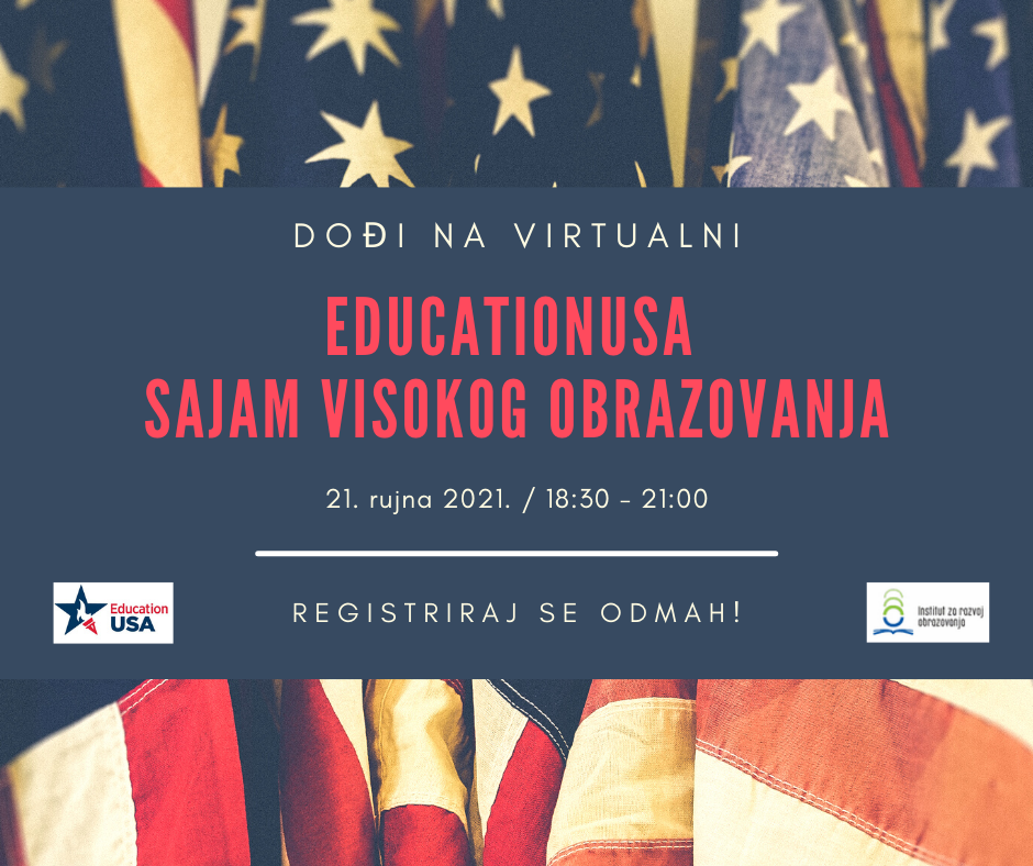 U utorak, 21. rujna 2021., od 18:30 do 21:00 sati održat će se osmi po redu EducationUSA sajam visokog obrazovanja, koji organizira Institut za razvoj obrazovanja (IRO), jedini ovlašteni centar globalne mreže EducationUSA u Hrvatskoj.