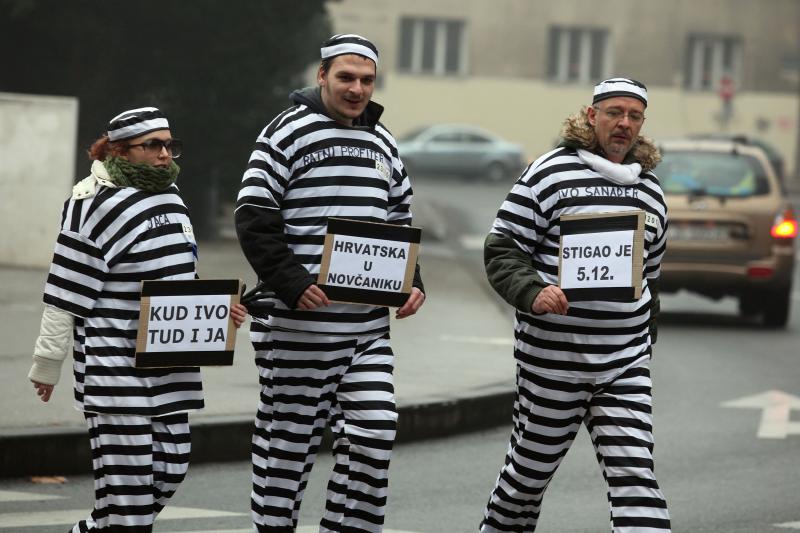 Naime, jutros je održan performans troje aktivista koji su se pojavili pred središnjicom HDZ-a u zatvorskim odijelima, no nakon deset minuta policija je prekinula performans.