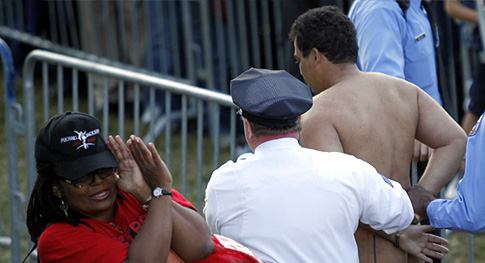 Rodriguez je uhićen zbog golotinje u javnosti na mitingu u Philadelphiji s natpisom "Battlecam" preko prsa. Navodno je izveo "streak" kao odgovor na izazov milijardera Alkija Davida koji je obećao da će isplatiti jedan milijun dolara prvoj osobi koja protrči gola ispred predsjednika. David je rekao za časopis Weekly Standard da će Rodriguez dobiti svoj novac kada on potvrdi da se to uistinu dogodilo. Kada vidim video snimku i to bude potvrđeno, Rodriguez neće primiti ček već gotovinu - rekao je. David je rekao listu da za osvajanje nagrade predsjednik mora vidjeti i čuti "streakera" te da on mora šest puta uzviknuti ime njegove web stranice "Battlecam" i naravno da mora biti gol.