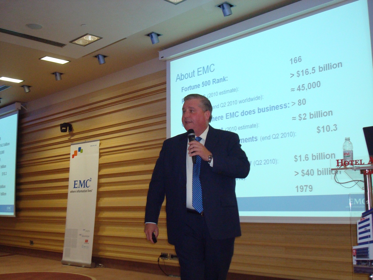 Tvrtka EMC, jedan od vodećih svjetskih pružatelja rješenja u segmentu računalne infrastrukture, održala je u hotelu Antunović svoju prvu službenu konferenciju u Hrvatskoj na kojoj se okupilo više od 200 predstavnika partnerskih tvrtki, klijenata i stručnjaka za infrastrukturna IT rješenja. Nakon kraćeg uvoda EMC-ovog channel managera za regiju Srednje i istočne Europe Luke Topića, u kojem je predstavio konferenciju i lokalni ured, okupljenima se obratio Bill Raftery, potpredsjednik divizije za globalnu prodaju proizvoda u korporaciji EMC.