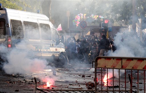 U Rimu u demonstracijama sudjeluju deseci tisuća ljudi, a policija ih rastjeruje suzavcem i vodenim topovima. Talijani su nezadovoljni zbog velike nezapaoslenosti, političke paralize i vladinih mjera uštede 60 milijarda eura pomoću podizanja poreza i rasta troškova za zdravstvenu zaštitu.
