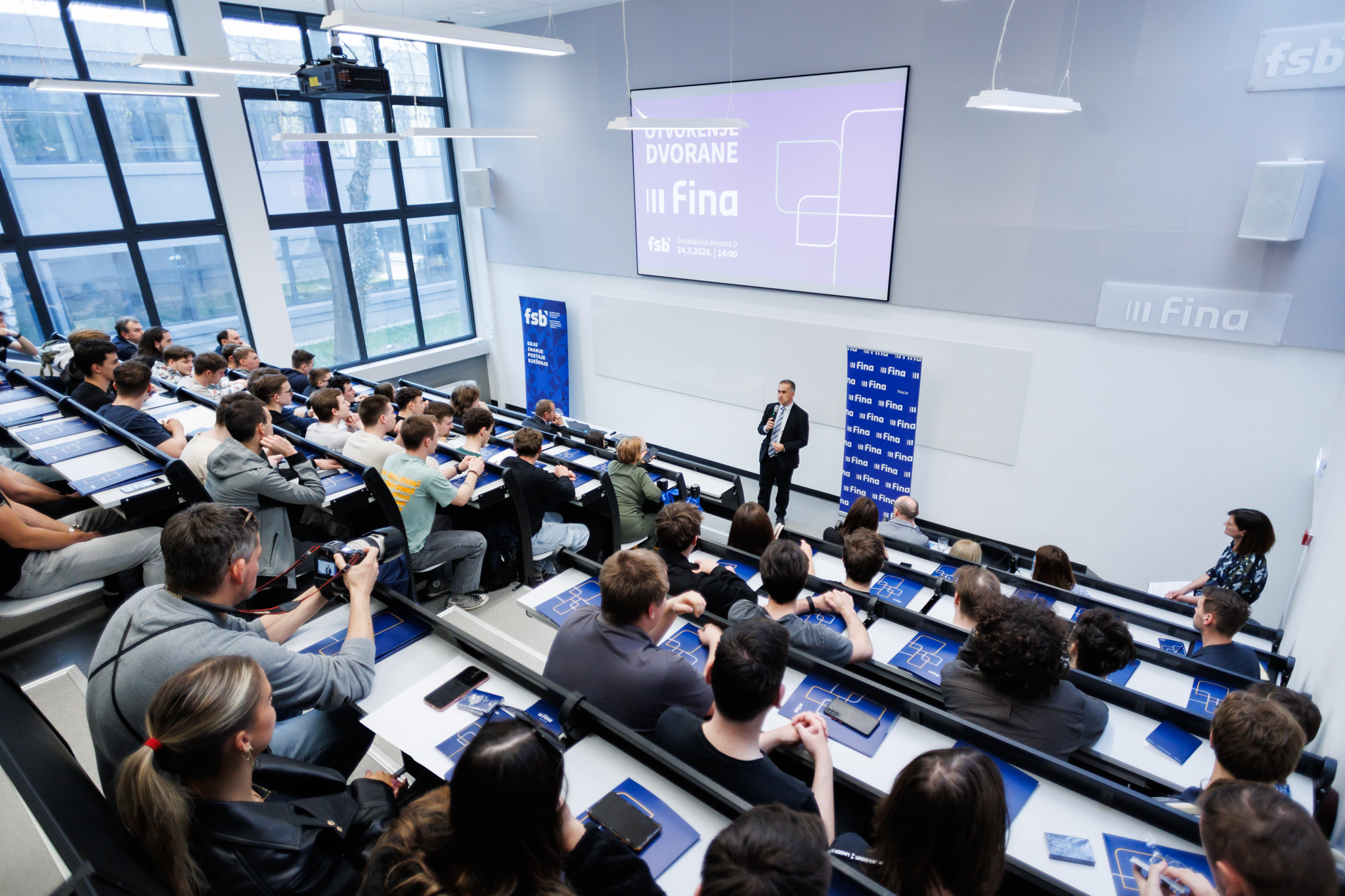 U utorak, 24. ožujka 2026. godine, na Fakultetu strojarstva i brodogradnje u Zagrebu svečano je otvorena dvorana Fina, nekadašnja dvorana D, smještena u prizemlju južne zgrade Fakulteta. Naziv je dobila u okviru sponzorstva s Finom, koja već dugi niz godina sustavno razvija partnerstva s akademskom zajednicom.