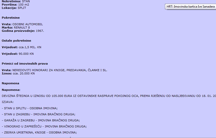 Potpunu imovinsku karticu Ive Sanadera pogledajte OVDJE.