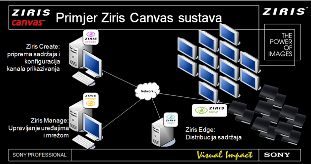Canvas je vrh piramide Sony Ziris rješenja za digitalno oglašavanje (Digital Signage) razvijenog u Sonijevom europskom timu (Sony European Development Team, Basingstoke, Velika Britanija) i plod je višegodišnjeg rada na području upravljanja multimedijalnim sadržajima i uređajima koji čine sustav digitalnog oglašavanja, najpropulzivnije marketinške platforme danas.