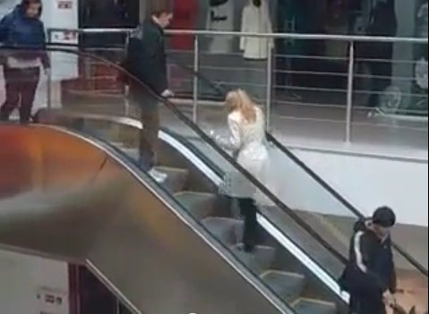 PAUZA: Plavuša koristi pokretne stube na neobičan način