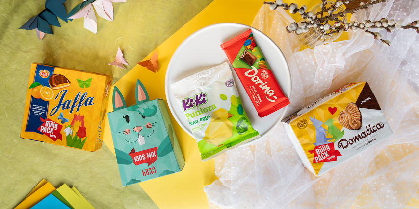 Kraševe slastice šarenih boja i oblika, iz asortimana Složi slatko proljeće, mogu biti vaš origami koji slažete po vašim željama, a dječji paket u obliku simpatičnog zečića i veeelika pakiranja omiljenih slastica spremni su ušareniti i zasladiti vaše uskršnje gnijezdo ili košaricu. Tako, recimo, možete kombinirati kremastu Dorinu Milky Eggs čokoladu obogaćenu mliječnim puffsima s Domaćicom Duopack koja pruža dvostruku dozu tradicije, a uz to možete dodati trostruki užitak čokoladno voćne rapsodije, Jaffa 3Packa, i tako složiti svoje slatko proljeće!