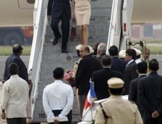 Francuski predsjednik Nicolas Sarkozy doputovao je u subotu ujutro u četverodnevni radni posjet Indiji, gdje bi, kako se očekuje, trebao potpisati sporazume u jačanju suradnje na polju civilne nuklearne energije, obrane i svemirske tehnologije.