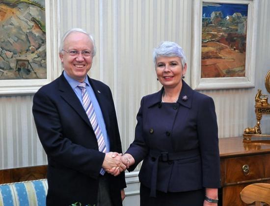 Predsjednica Vlade Republike Hrvatske Jadranka Kosor sastala se u Banskim dvorima s regionalnim direktorom Svjetske banke za srednju Europu i baltičke zemlje Peterom Harroldom koji je tom prigodom predstavio novog voditelja Ureda Svjetske banke za Hrvatsku Hangjooa Hahma.