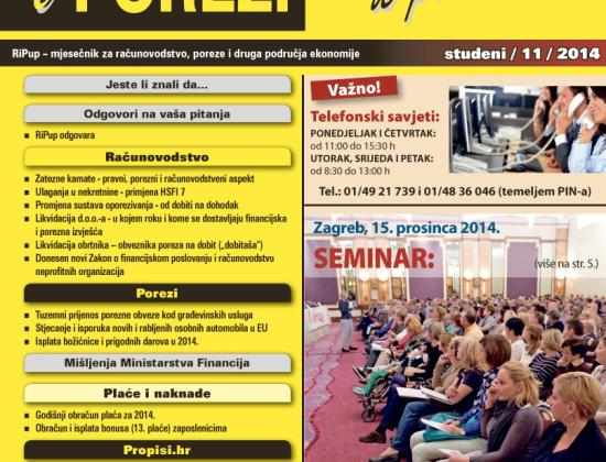 Novo redizajnirano izdanje časopisa Računovodstvo i porezi u praksi - studeni je u tisku, a kod pretplatnika će biti u petak 14