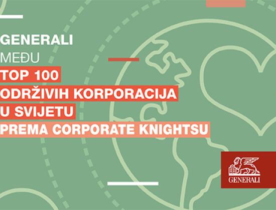 Trst - Generali je uvršten na rang listu „Global 100 najodrživijih korporacija u svijetu za 2020. godinu“ od strane Corporate Knightsa.