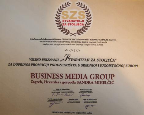 FOTO: Business Media Group-i uručeno međunarodno priznanje "Stvaratelji za stoljeća"