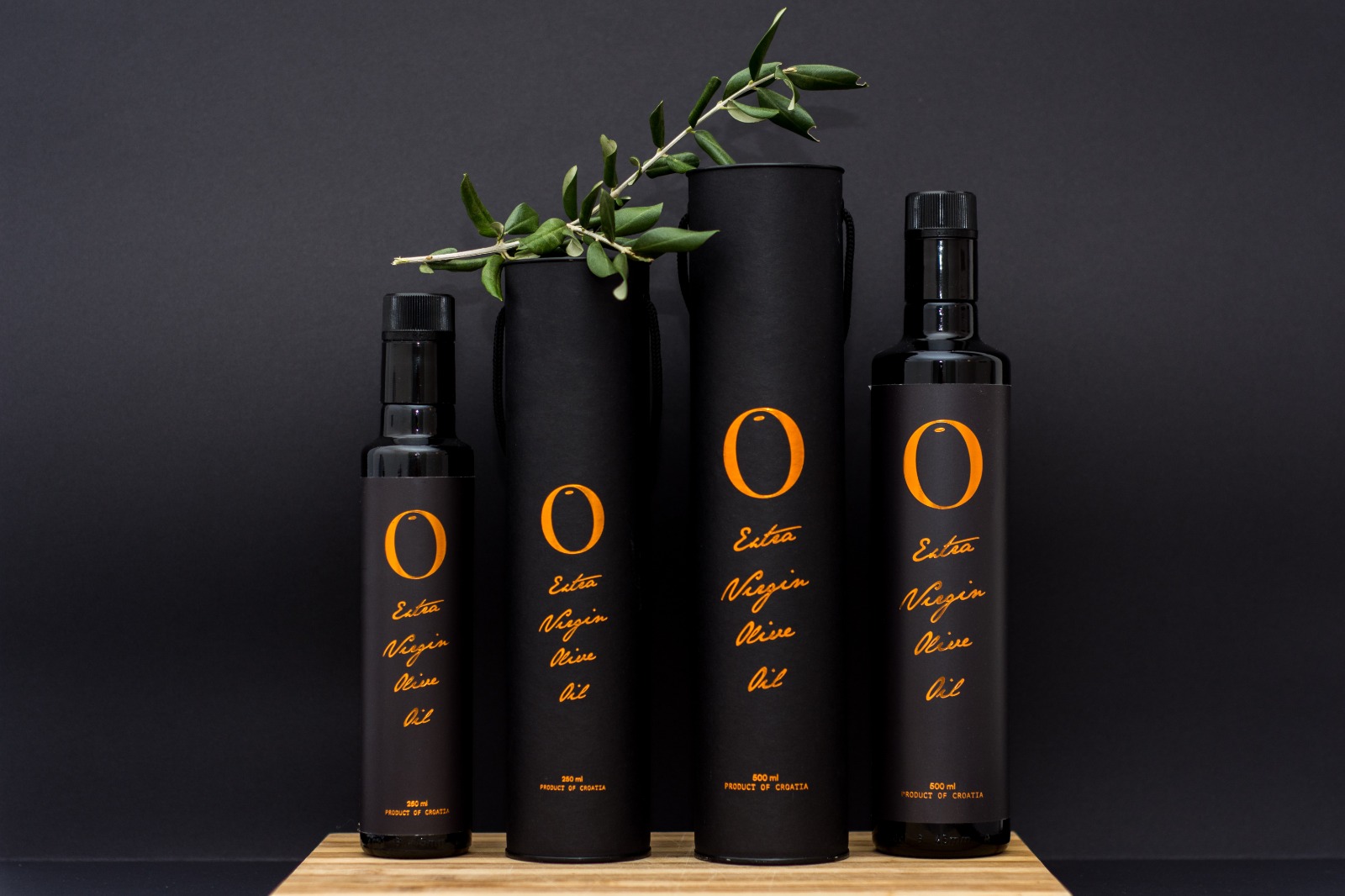 Ekstra djevičansko maslinovo ulje O na tržište dolazi u dvije varijante: profinjena bakrena etiketa krije monosortno ulje Oblice, a zlatna krasi premium blend vješto isprepletene Oblice, Leccina i Lastovke. Logo, stilizirano slovo O koje podsjeća na savršen plod masline, zauzima čelno mjesto na etiketama, a na pozadini elegantnih bočica koje čuvaju dragocjeni ekstrakt dalmatinskog sunca, kriju se stihovi u kojima je sažeta ljubav, posveta dalmatinskom terroiru, vrijednim rukama, ljudima, vremenu i radosti života.