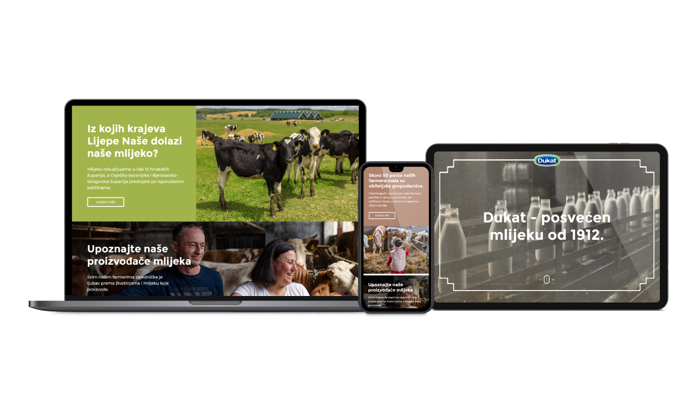 Komunikacijska platforma www.PosvecenMlijekuOd1912.hr uvodi nas u bogatu i skoro 110 godina dugu povijest Dukata na našim prostorima te predstavlja Dukatove kooperante; velike proizvođače mlijeka kao i mala obiteljska gospodarstva koja se bave proizvodnjom mlijeka; neka od njih i već treću generaciju zaredom mlijeko predaju Dukatu. Upoznajte ih!