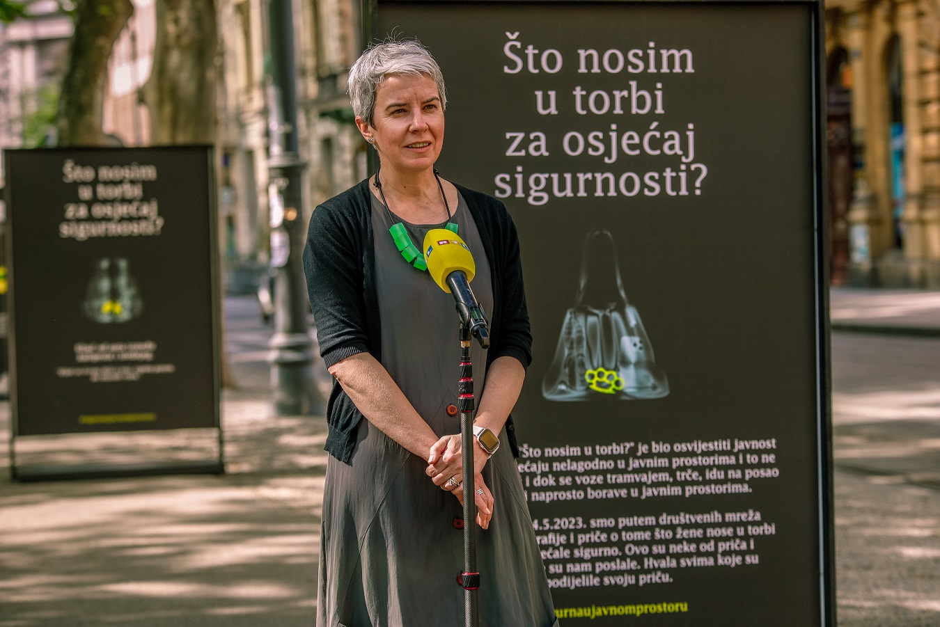 Kampanja „Što nosim u torbi?“ otkrila nam je da neke žene, zbog osjećaja nesigurnosti u javnom gradskom prijevozu i taksijima te na ulicama i trgovima u torbama nose i zakonom zabranjene stvari. Te stvari, dakle, imaju kraj sebe, ali ih ne koriste. Kada se žene naoružavaju na taj način kako bi se osjećale sigurnije, jasno je da institucije za njihovu sigurnost ne čine dovoljno. Trebamo osvijestiti tu činjenicu i zbog svojih kćeri, sestara, djevojaka, supruga, mama i baka naše gradove učiniti sigurnijima, kazala je Dunja Bonacci Skenderović, politologinja, konzultantica za suzbijanje nasilja nad ženama, članica inicijative „Razotkrijmo skriveno uznemiravanje“ i predsjednica udruge Sigurna mjesta.