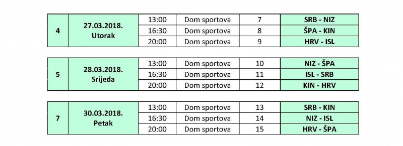 Sve utakmice igraju se u Ledenoj dvorani Doma sportova, a ulaz na sve utakmice je slobodan.