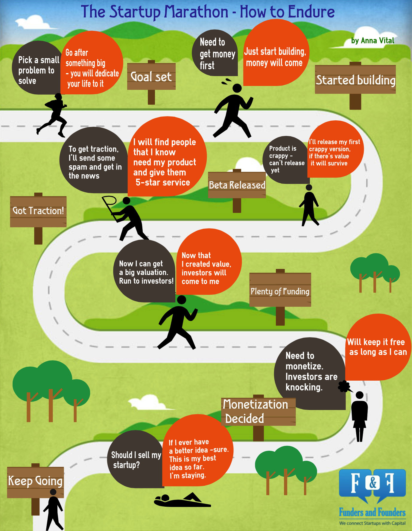 Poduzetništvo INFOGRAFIKA: Startup maraton - samo za izdržljive 10.09.2012. Pokretanje startupa nije sprint nego maraton i to maraton bez točno ucrtane rute s mnoštvom prepreka, a samo će izdržljivi trkači doći do kraja, odnosno uspješne tvrtke. Dobra ideja i okupljanje tima samo su prvi korak koji vas čeka. Oznake financije poduzetništvo pokretanje posla startup