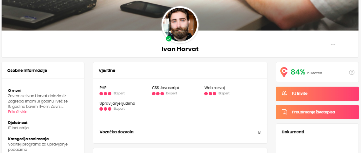 PickJobs nudi PJ MATCH opciju koja kvalitetno i precizno povezuje poslodavca i posloprimca. Na temelju unesenih parametra u oglas, a shodno popunjenom privatnom profilu korisnika, sustav pomoću umjetne inteligencije automatski izračunava kompatibilnost prijavljenog kandidata s obzirom na potrebe poslodavca.