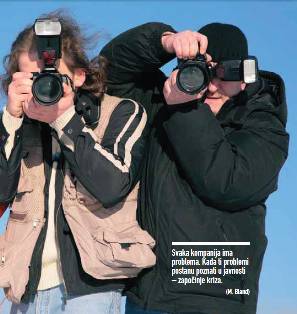 Javni mediji su nekoć davno proglašeni sedmom silom. Danas ih obično ne nazivamo tako, premda smo i dalje svjedoci njihove velike moći, bilo kao njihov korisnik, bilo kao njihov predmet. To vrijedi i za suvremenu tvrtku koja je – u kontekstu Blandove duhovite opaske – korisnik javnih medija sve dok uspješno skriva svoje probleme, a njihov predmet od trenutka “kada ti problemi postanu poznati javnosti”. (PS/Z.R.)