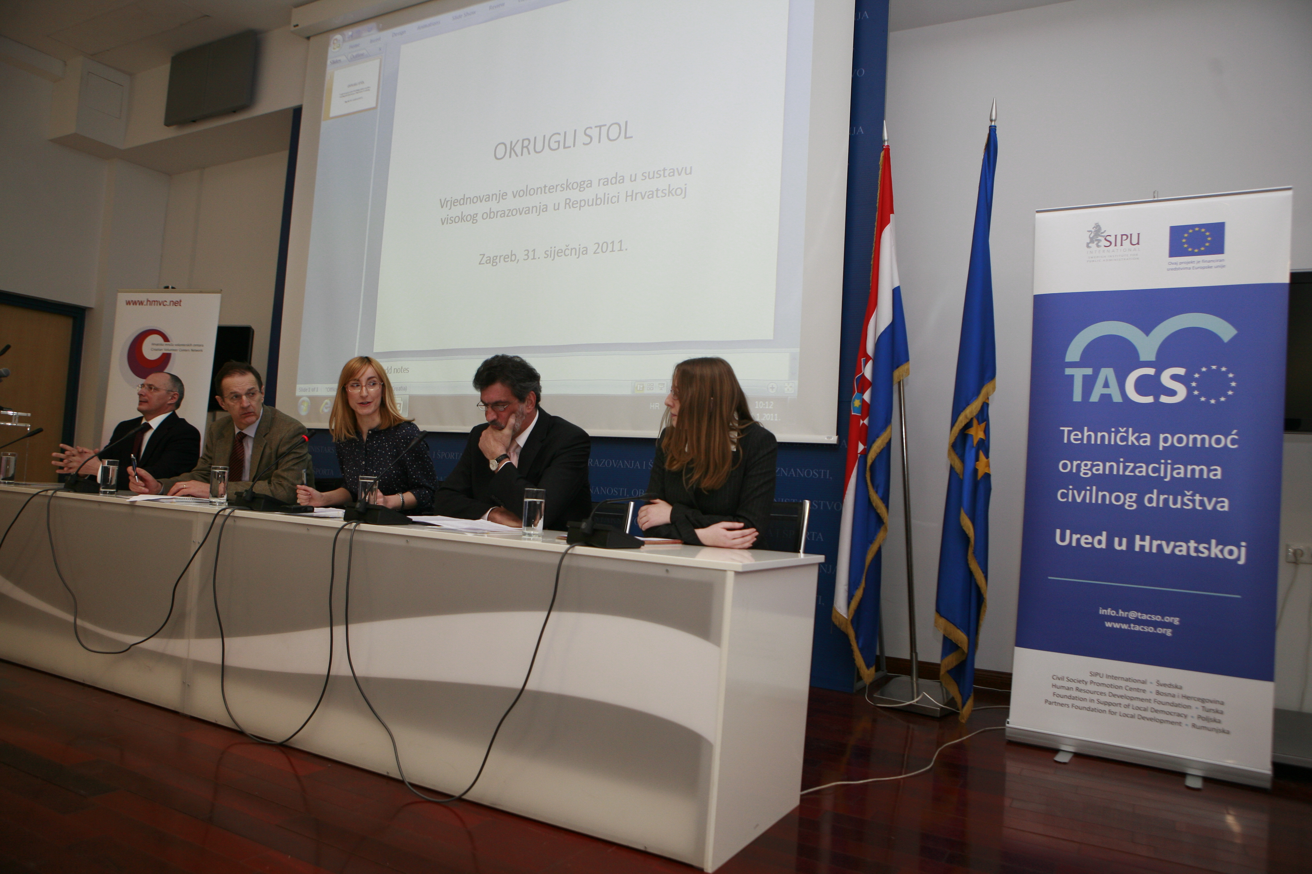 U povodu obilježavanja Europske godine volontiranja 2011., 31. siječnja 2011. u prostorijama Ministarstva znanosti, obrazovanja i športa održan je tematski okrugli stol „Vrednovanje volonterskog rada u sustavu visokog obrazovanja u RH“.